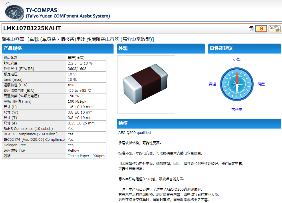 零件号别名: CE LMK107 BJ225KAHT